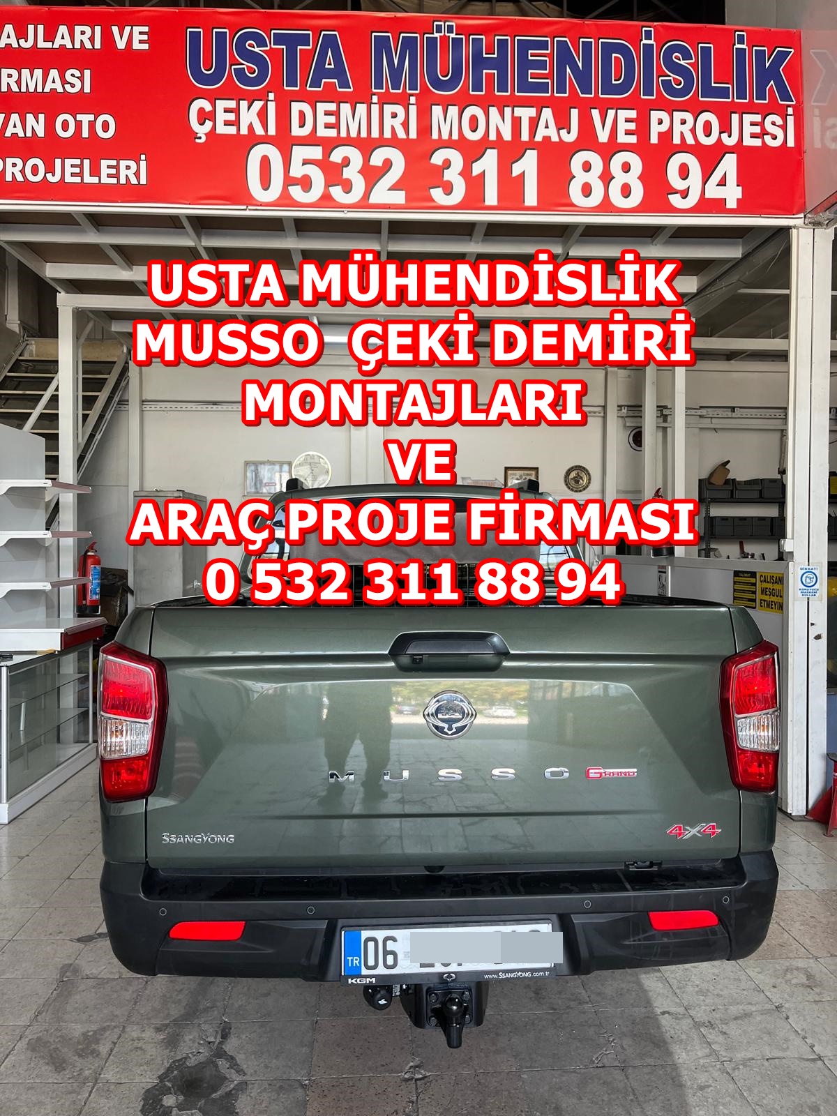 USTA MÜHENDİSLİK Firması, musso grad pıck up kamyonet otomobil, SUV, arazi taşıtı, kamyonet ve panel Van gibi çeşitli araç türlerine çeki demiri montajı hizmeti sunmaktadır.